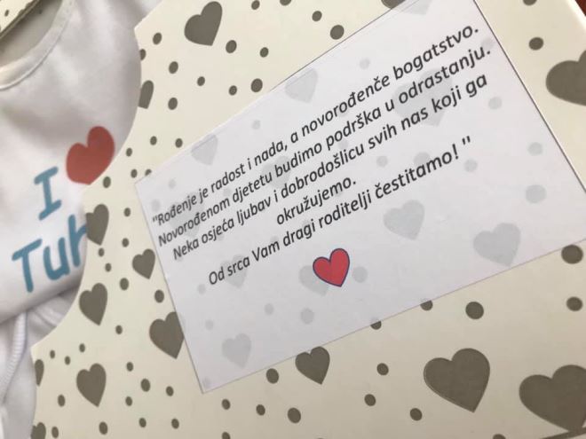 Tom prilikom načelnik Mladen Hercigonja uputio je čestitku roditeljima te im podijelio poklon paket koji se od ove godine dodjeljuje novorođenoj djeci, a koji sadržava osnovne potrepštine za bebe.