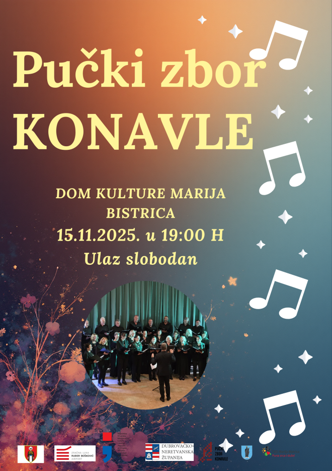 U Mariji Bistrici u subotu 15. studenog gostuje Pučki zbor Konavle, koji će u Domu kulture održati svoj samostalni koncert. Pučki zbor Konavle djeluje od 2023. godine i sastavni je dio kulturnog života Konavala i okolice. Zbor je sastavljen od pjevača s područja Općine Konavle koji imaju priliku na vrlo izravan, konkretan i korektan način baštiniti stoljetnu pjevačku tradiciju, gotovo zanemarenu vještinu svojih predaka.