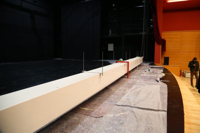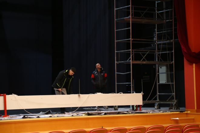Po provedenoj javnoj nabavi, krenula je potpuna rekonstrukcija pozornice Festivalske dvorane, koja je uključivala zamjenu kompletnog poda pozornice te rušenje i izradu dvostruko armirane betonske ploče kako bi se omogućilo strojevima da uđu u sam prostor pozornice.