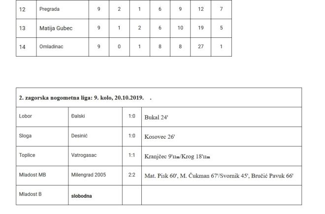 Rezultati prve i druge zagorske nogometne lige Autor: zagorje.com 20 listopada, 2019. 19:26 Donosimo rezultate odigranih utakmica ispis Tweet Share on Facebook Plus on Google+