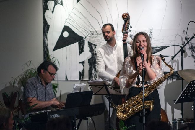 Ova jedinstvena umjetnica 2020. godine formirala je 'Sandra Halužan kvartet' kroz koji surađuje s Joeom Kaplowitzem na klaviru, Bojanom Skočilićem na kontrabasu i Antunom Profetom na bubnjevima. Riječi kojima bismo opisali njihovu sinergiju, emocije, posvećenost, prisutnost i energiju ne postoje jer je to kolektiv kojeg morate doživjeti uživo i dopustiti si da vas odvede u paralelni svijet u kojem zvuk pleše autentične slike ocrtavajući glatke i nježne, a istovremeno energične i neočekivane pokrete. Sandra sa svojim kvartetom komponira i izvodi jazz aranžmane autohtonih zagorskih skladbi i autorske skladbe na kajkavskom narječju. U siječnju 2022. godine snimila je album prvijenac pod nazivom 'Vu plavem/In The Blue' koji izdaje Geenger Records u ožujku 2022. godine. Uz sve to, djeluje u mnogim sastavima, a ovog je mjeseca Desiniću poklonila najljepši mogući poklon - 'Festival nove tradicije' koji je, u organizaciji njenog obrta 'Svemir zvuka' u dvorište Rodne kuće Đure Prejca doveo slovenski duo 'Zajtrk', u Dvor Veliki Tabor Ninu Romić i Jelenu Galić, 'Sandra Halužan kvartet', završni koncert polaznika vokalnog seminara i glazbenu igraonicu za djecu.