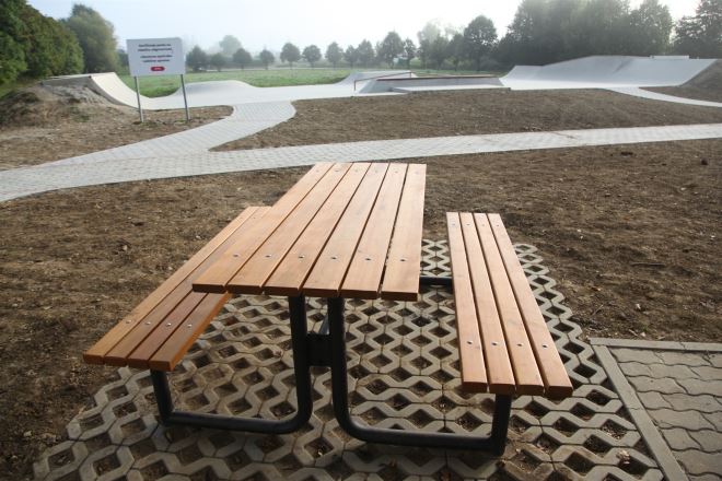 Skate park je opremljen urbanom parkovnom opremom, izgrađene i prilazne pješačke staze
