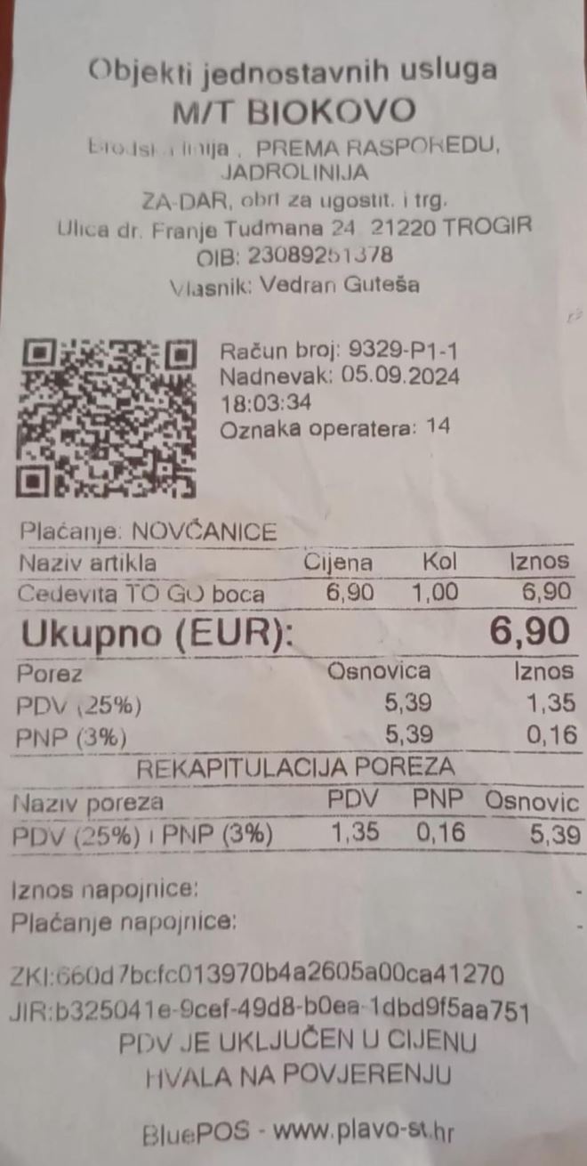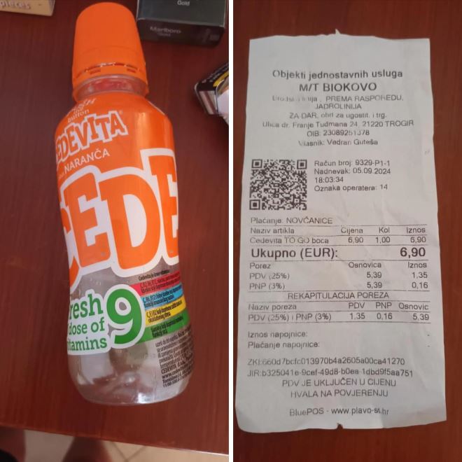 ŠOK I NEVJERICA! Pogledajte koliko je putnik platio Cedevitu na trajektu.