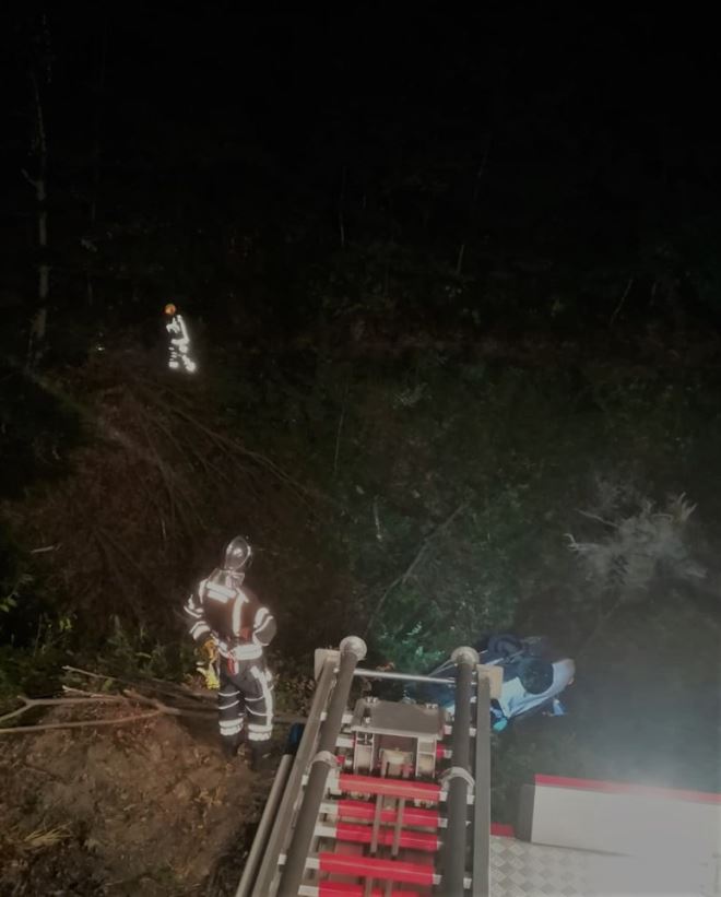 "Nesreća se zbila na Sljemenskoj cesti broj 5 i spašavanje je počelo u 2:45, a u postaju smo se vratili u 4:01. Sudjelovala su dva vozila i devet vatrogasaca, a pri spašavanju su se koristila užad, naša oprema i oprema s automobila."Naveli su i da je riječ o osobnom automobilu marke Mercedes, koji je visio nad provalijom dubine dvadesetak metara, okrenut krovom prema njenom dnu.