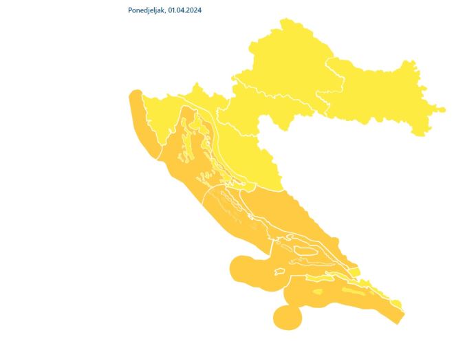Upaljen je meteoalarm za cijelu Hrvatsku, javlja DHMZ, koji je za kontinentalni dio izdao žuto upozorenje, a narančasto za obalu kao i za kninsku regiju. Za zagrebačku regiju izdano je upozorenje za mjestimice izražene pljuskovi s grmljavinom, a mjestimice su mogući olujni udari jugozapadnog vjetra, navečer sjeverozapadnog.