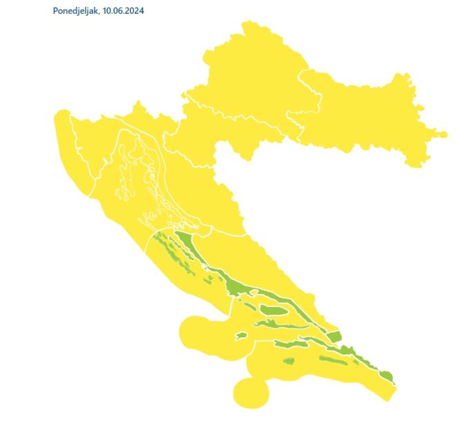 Naime, za gotovo čitavu Hrvatsku za sutra je upaljen meteoalarm, odnosno, izdano je žuto upozorenje što znači da je moguće opasno vrijeme.