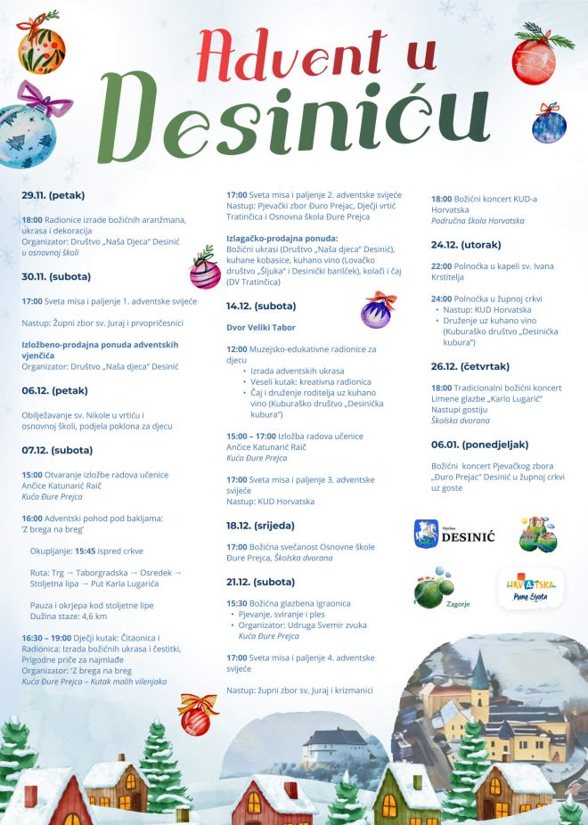 Približavaju nam se predivni blagdanski dani, a time i brojna događanja desinićkih udruga, župe sv. Jurja te djece i učenika iz škole i vrtića.
