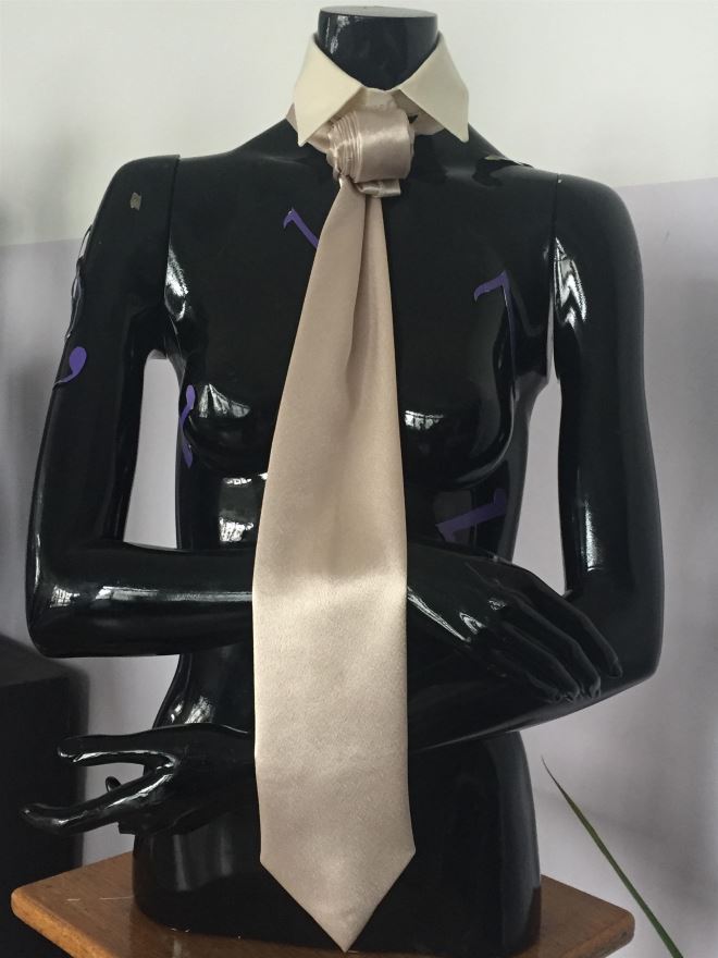 Treći razred dizajna odjeće iskrojio je i oblikovao kravate od satena koji izgledom imitira teksturu svile. Varijacije su ostvarene različitim čvorovima.