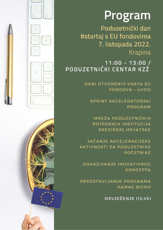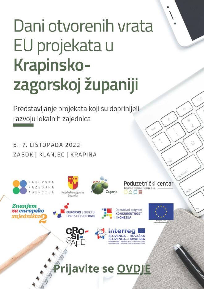 „Zagorska razvojna agencija organizira trodnevno događanje posvećeno ponajprije uspješnim projektima sufinanciranima EU sredstvima koji se provode na području Krapinsko - zagorske županije, ali i predstavljanju novih mogućnosti u okviru fondova Europske unije – Dane otvorenih vrata EU projekata u Krapinsko-zagorskoj županiji. Program se odvija od 5. do 7. listopada, a obiluje nizom događanja kroz koje će se predstaviti projekti koji imaju velik utjecaj na lokalnu zajednicu.