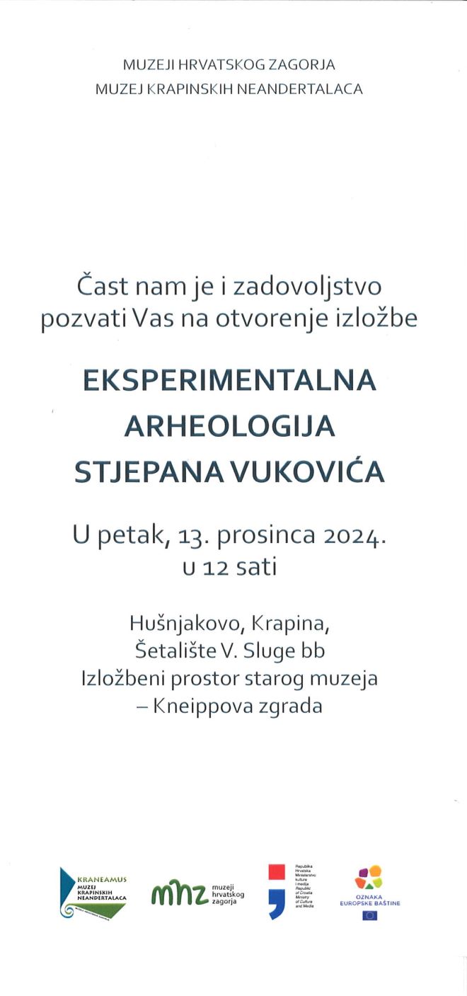 Muzej krapinskih neandertalaca najavljuje otvorenje izložbe „Eksperimentalna arheologija Stjepana Vukovića“.