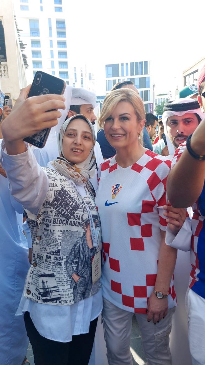 Čini se kako je Kolinda prava navijačka zvijezda u Dohi, obzirom da su se svi željeli fotografirati s njom, pa je objavila fotografije s hrvatskim navijačima, ali i domaćim stanovništvom.