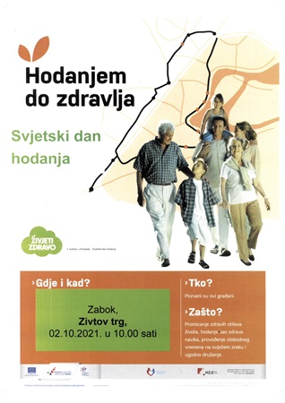 U subotu 2. listopada u Zaboku će se obilježiti Svjetski dan hodanja. Aktivnost „Hodanjem do zdravlja“ odvija se u sklopu Nacionalnog programa „Živjeti zdravo“ koji se provodi na području cijele Hrvatske, a sufinanciran je iz Europskog socijalnog fonda. Pozivaju se svi građani da se priključe šetnji. Okupljanje je na Zivtovom trgu u 10 sati, a voditelj je profesor kineziologije Mislav Crnković. Aktivnost „Hodanjem do zdravlja“ će se i dalje održavati svaku subotu kroz cijelu godinu.