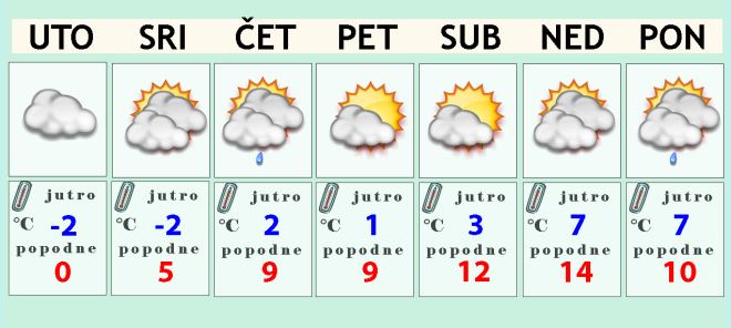 VREMENSKA PROGNOZA: Utorak nastavlja uz puno oblaka i mjestimičnu maglu, samo ponegdje uz vrlo malo slabih oborina. Temperatura ostaje u zimskom režimu pa će noću biti u blagom minusu, a dnevna temperatura ići će tek do nule pa pripazite na mogućnost poledice.