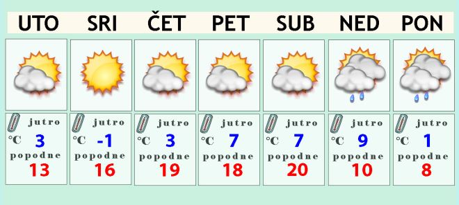 U utorak najviša dnevna temperatura između 10 i 13 Celzijevih stupnjeva. Navečer hladnije.
