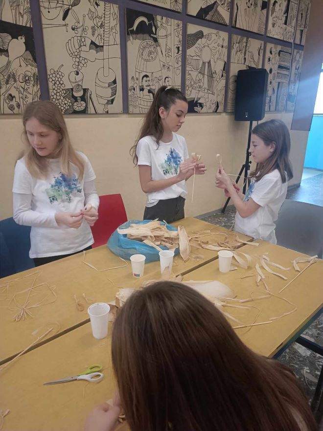 Druženje je započelo pjesmom Klare Šimag i plesom malih folkolorašica, nakon čega su uslijedile radionice kojima je bilo cilj naučiti kako od komušine napraviti anđela i cvijet.