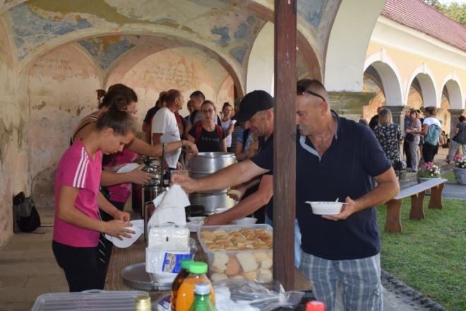 Nakon mise organizirano je i druženje i objed za sve pješake, ali i 50-ak Bistričanaca koji su na Trški Vrh stigli automobilima ili biciklima, sve uz primjetno poštivanje epidemioloških mjera.
