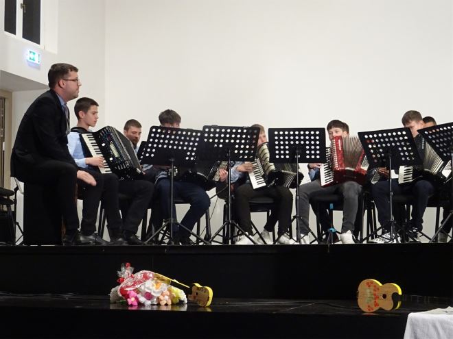 Tko ne bi zapljeskao kad na pozornicu izađe devet malih tamburaša, folklorni sastav KUD-a „Lovro Ježek“ iz Marije Bistrice, čija je voditeljica prof. Tatijana Lenart, pa još kad zasviraju polke i drmeše.