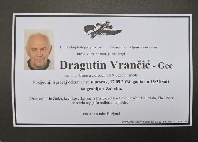 ''Nažalost opet jedna tužna vijest... Preminuo je naš bivši trener Dragutin Vrančić Gec. Posljednji ispraćaj je sutra u 15:30 na groblju u Zaboku.'' – napisali su iz kluba.