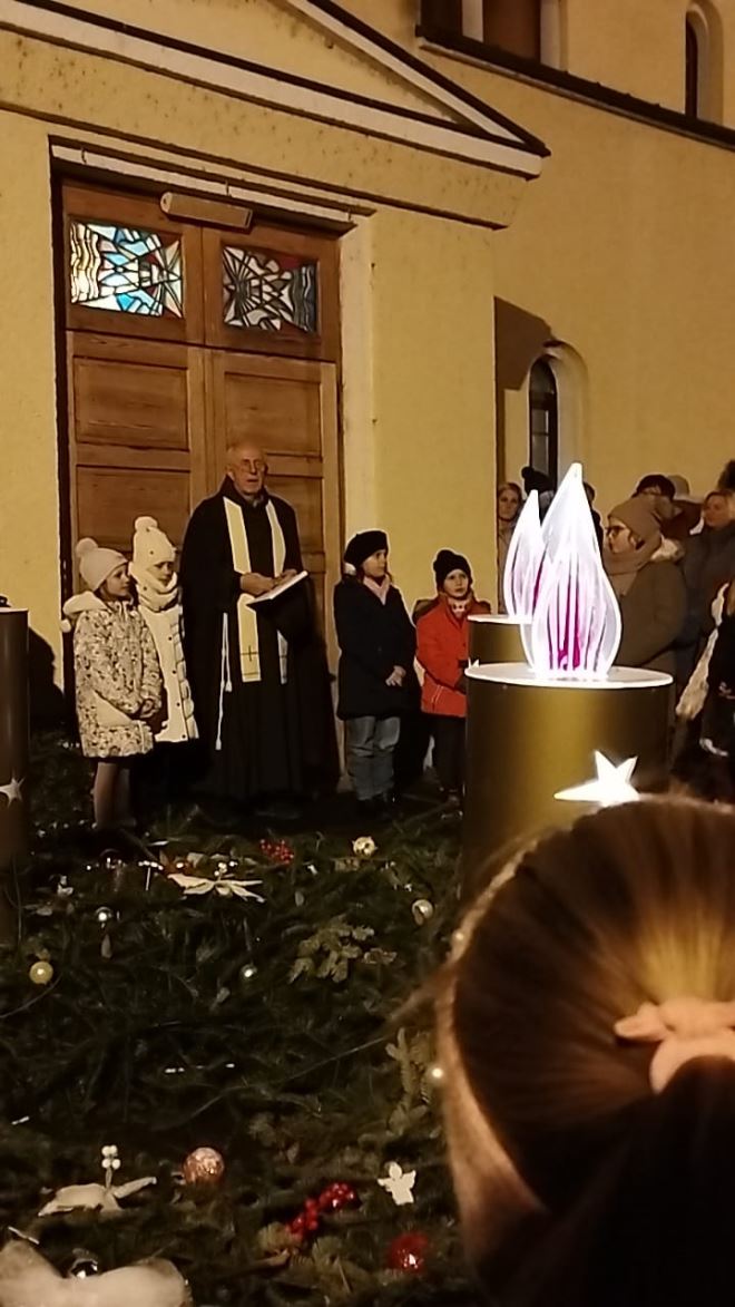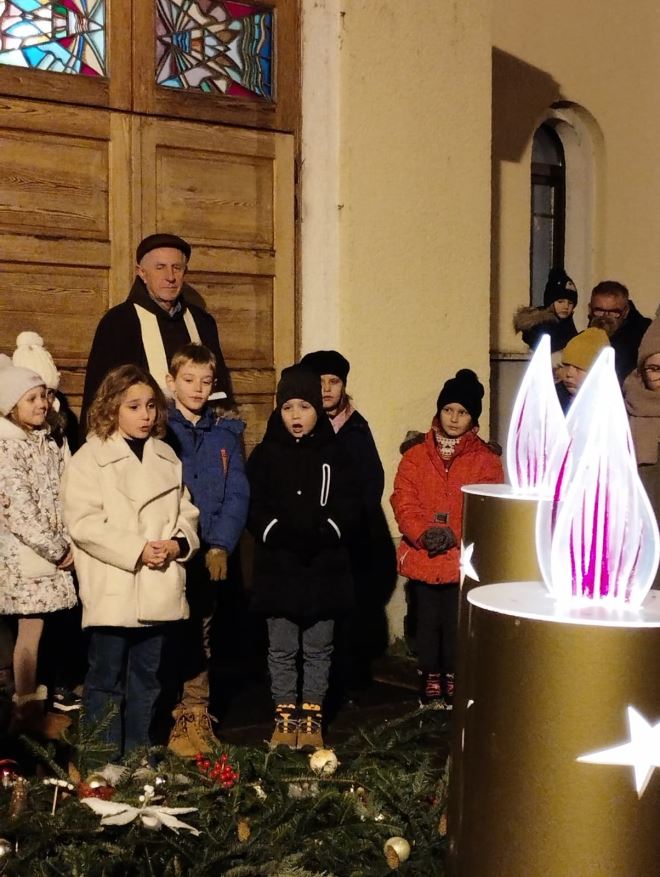 Za program ispred crkve sv. Jurja ovoga je puta bila zadužena Osnovna škola Đurmanec, pa su tako djeca za okupljene pripremili recitacije, pjesme te igrokaz, dok je molitvu predvodio krapinski velečasni. Druženje je nastavljeno u toplini pastoralnog doma gdje su članice DND-a djeci pročitale priču o svijeći, nakon čega je uslijedila radionica izrade čestitaka sa prigodnim tekstom.