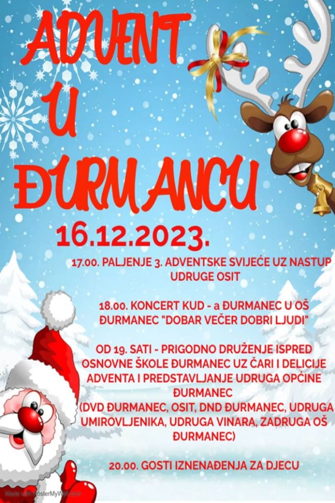 Iz Općine pozivaju mještane na još jedan bogati program koji je pripremljen povodom Adventa u Đurmancu.