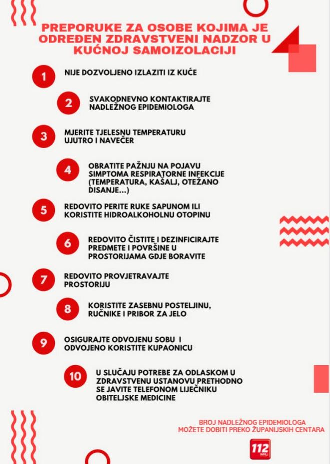 10. U slučaju potrebe za odlaskom u zdravstvenu ustanovu prethodno se javite telefonom liječniku obiteljske medicine
