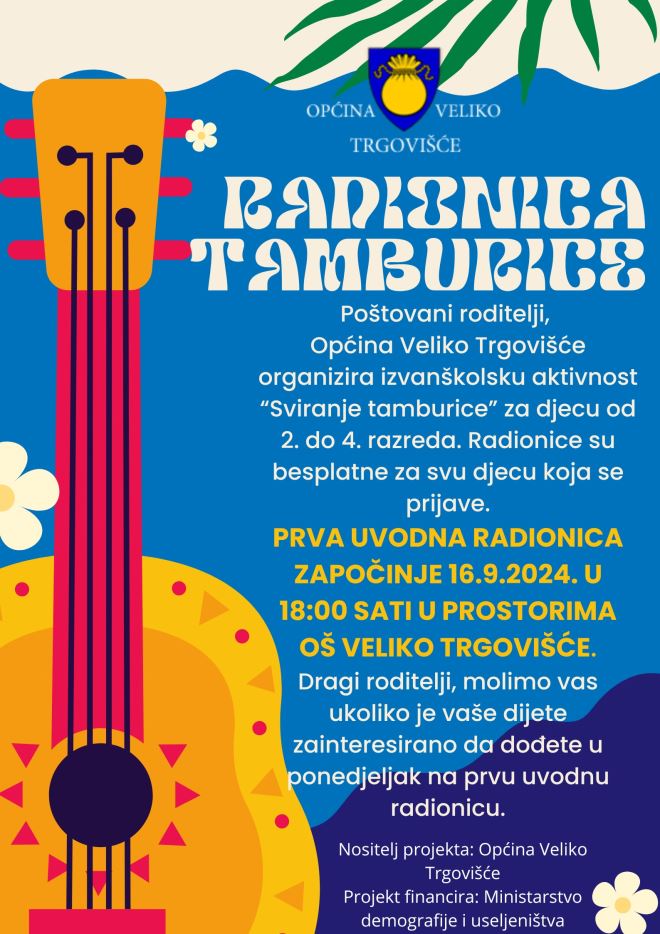 Općina Veliko Trgovišće organizira izvanškolsku aktivnost sviranja tamburice za djecu od 2. do 4. razreda, a radionice su besplatne za sve!
