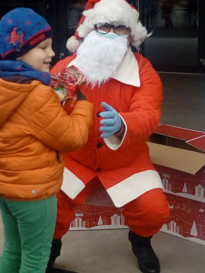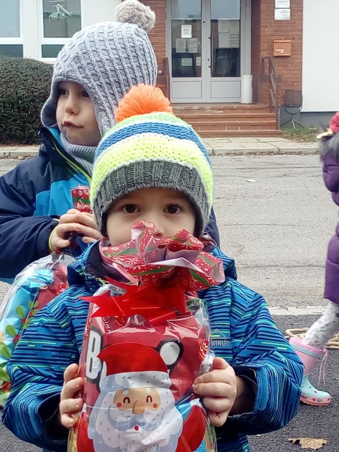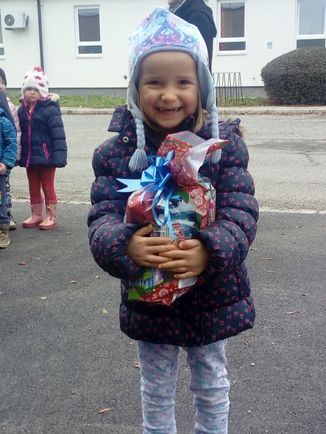 No, iako još nisu u novom vrtiću, djeca su brzo dočula gdje ih očekuje iznenađenje. O oduševljenju kad su ugledali Djeda Mraza ne treba ni govoriti! Djeca su logično razmišljala razmišljala: ove godine nema priredbe i druženja, ali ima poklona i Djeda Mraza. Dobri Djedica je svakom djetetu dao paketić.