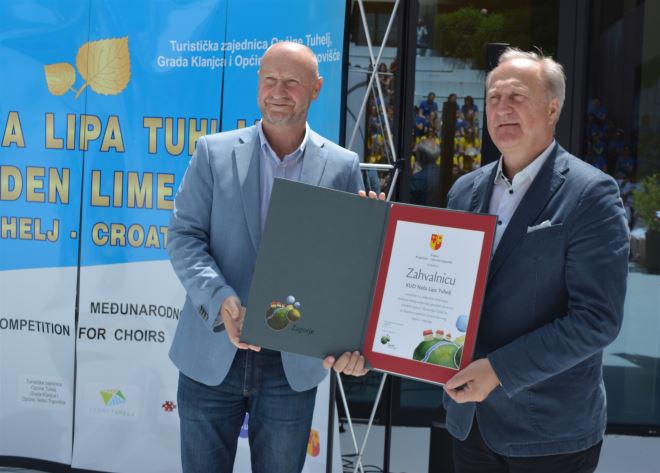 Sukladno ovlastima kao župana, KUD – u Naša Lipa Tuhelj i dirigentu Armandu Slavičeku župan Kolar je predao zahvalnicu povodom 15. obljetnice održavanja natjecanja i za dioprinos zajednici, promociju svog mjesta i županije i stvaranju dobre klime.