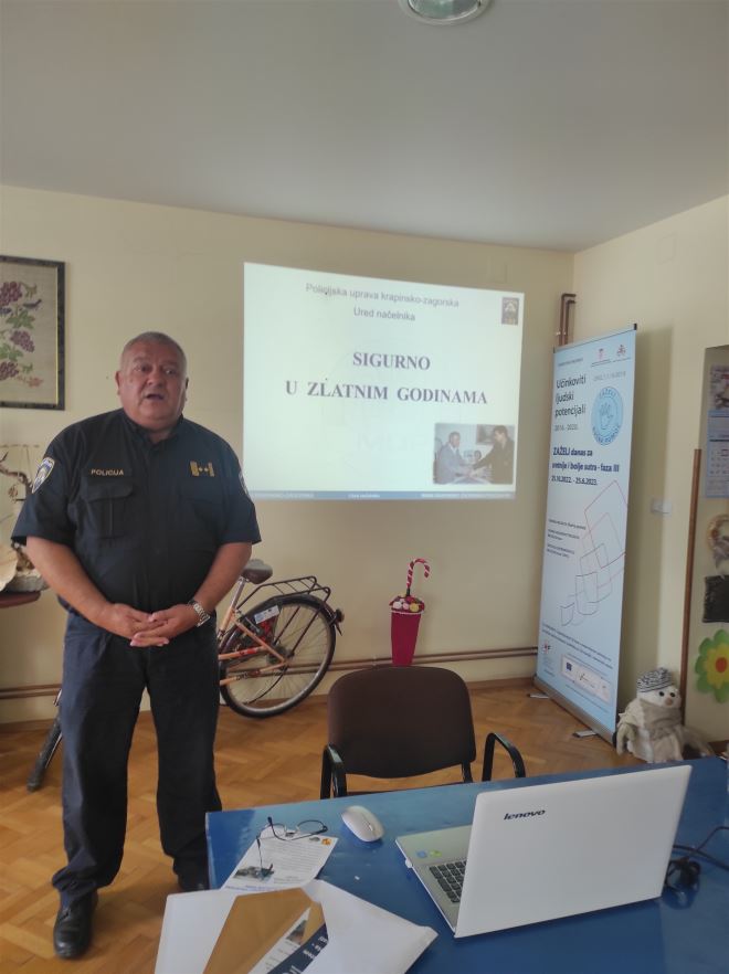 Na poziv udruge, a u sklopu provođenja preventivnih aktivnosti Policijske uprave krapinsko-zagorske „Sigurno u zlatnim godinama“ održana su predavanja na temu „Sigurnost na mobitelu i internetu“ i „Prijevare na kućnom pragu“, a korisnici su upoznati s preporukama i savjetima vezanih uz kampanju „Manje oružja, manje tragedija“. Predavanja su održana od strane predstavnika Policijske uprave krapinsko-zagorske Željka Leža.