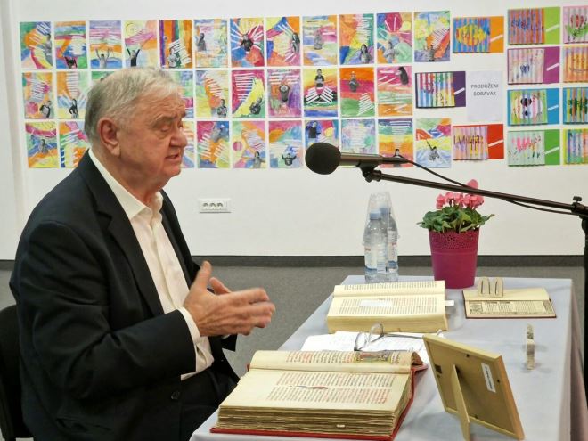 Akademik je održao zanimljivo predavanje pod nazivom “Glagoljična sastavnica hrvatske kulture”. U predavanju o glagoljici, akademik je naglasio da je to dragocjeni dio naše baštine, blago bez kojeg se ne može dobro napisati hrvatska književna i jezična povijest.