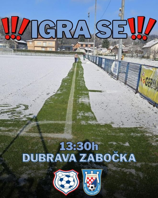 Kao što smo već objavili ,današnje kolo u 1. zagorskoj nogometnoj ligi je prebačeno na proljeće. Problem je i sa utakmicama viših liga. Gaj Mače i Zagorec KR su jučer uspjeli odigrati svoje susrete u gostima u 3. NL centar. Igran je i derbi u 4. NL središte skupina A u Bedekovčini, između Bedekovčine i Klanjca.