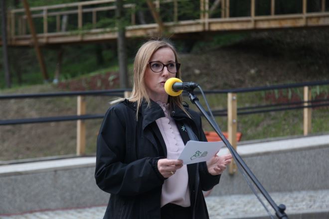-Takav je i ovaj biser Zagorja, značajan krajobraz Zelenjak, Risvička i Cesarska gora. Od tuda i projekt Zagorje – ABECEDA prirode, a kojeg Javna ustanova provodi zajedno s partnerima Zagorskom razvojnom agencijom i Krapinsko – zagorskom županijom. Kroz ovaj projekt uredit će se multimedijski centar za prirodu Zagorje u Radoboju, promociju i vidljivost Ustanove podigli smo na višu razinu, uredili smo 3 zelene učionice, izgradili smo ovu jedinstvenu stazu kroz krošnje. O stazi je već mnogo rečeno. Samo bih naglasila da je izgradnjom ove staze oplemenjen prostor potrebnim sadržajima koji su međusobno povezani i dio su jedinstveno poučno tematske priče, čime smo stvorili unikatnu turističku ponudu i posjetiteljima na poseban način nudimo sadržaje vezane uz zaštićenu prirodnu i kulturnu baštinu ovog područja. Oblikovanje staze bilo je diskretno i čuvala se priroda u osnovnom postojećem obliku. Svi zahvati u prostoru su minimalizirani, a način uklapanja u prostor bio je neagresivan. Podnožje staze zasađeno je perunikama - rekla je Hršak.