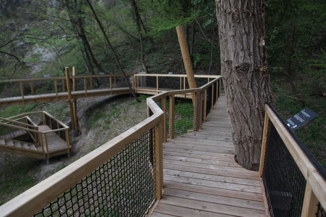 Staza dugačka 125 metara u Zelenjaku pokraj Klanjca prolazi kroz krošnje na visini od pola do pet metara iznad terena, a na kraju pruža pogled prema spomeniku ‘Lijepoj našoj’.