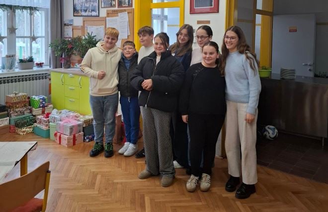 Odlučili su ove godine umjesto međusobnog darivanja, darivati štićenike i učenike Centra za pružanje usluga u zajednici Lipik. Poklone su, u pratnji ravnatelja škole Dominika Karajića i zapovjednika DVD-a Laz Damira Joća predstavnici sedmih razreda predali u utorak 16. prosinca.