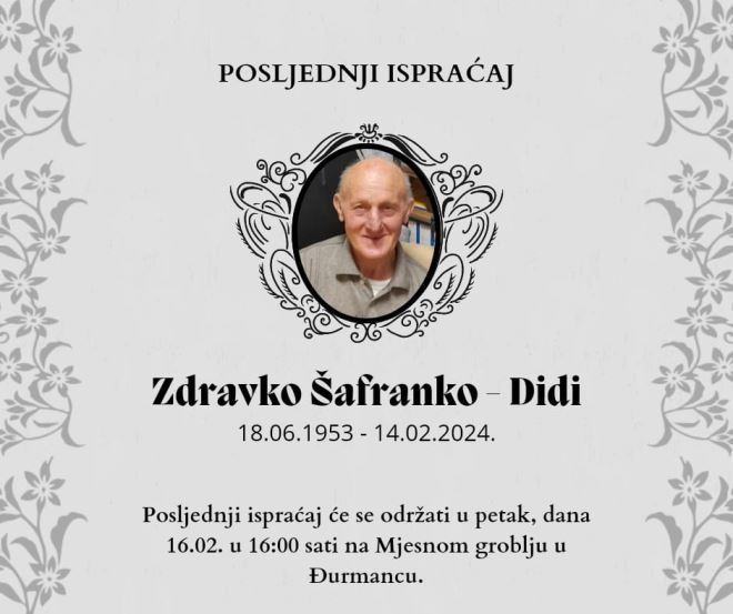 Posljednji ispraćaj legendarnog Dodika biti će na Mjesnom groblju u Đurmancu u petak, 16. veljače 2024. u 16.00 sati.