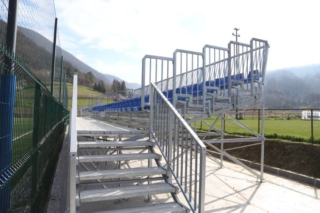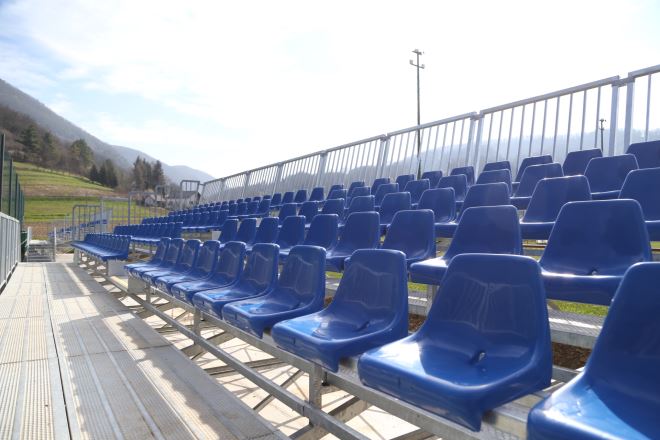 Projekt obuhvaća građenje dviju montažnih tribina na postojećem sportskom igralištu koje se nalaze s istočne i zapadne strane južnog nogometnog gola kao i građenje potrebne armirano betonske temeljne ploče za svaku montažnu tribinu. Osim aktivnosti gradnje i opremanja montažnih tribina, projekt uključuje i aktivnosti izrade projektne dokumentacije te stručnog nadzora nad gradnjom. U okviru provedbe projekta proveden je postupak javne nabave za gradnju i opremanje tribina te je sklopljen ugovor s odabranim ponuditeljem GHIA SPORT d.o.o., u iznosu od 94.790,25 eura bez PDV-a odnosno 118.487,81 eura s PDV-om. Kapacitet izgrađenih tribina je ukupno 246 sjedećih mjesta, odnosno 123 sjedeća mjesta sa svake strane.