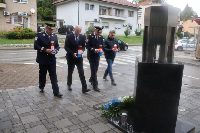 Župan Kolar je potom, zajedno sa zamjenikom načelnika PU krapinsko-zagorske Robertom Pavićem počast odao i kod spomenika poginulim službenicima Policijske uprave krapinsko-zagorske u Zaboku.