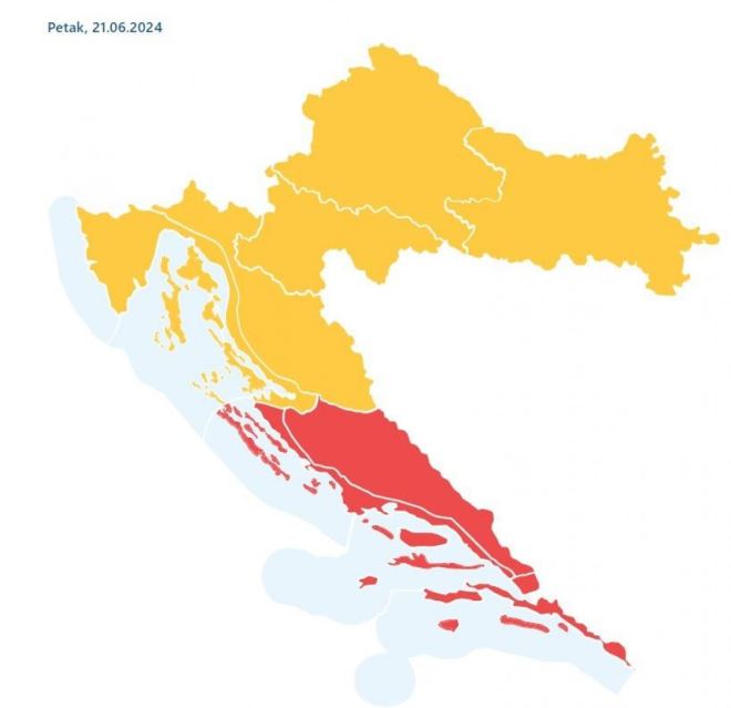 Uz sunčano i vruće vrijeme, meteorolozi za danas najavljuju vrhunac toplinskog vala. DHMZ je za kninsku, splitsku i dubrovačku regiju izdao crveno upozorenje, što znači "vrijeme je izuzetno opasno", dok je za ostatak zemlje na snazi narančasto upozorenje - "vrijeme je opasno"