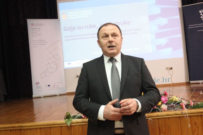 Ministar gospodarstva, poduzetništva i obrta Darko Horvat istaknuo je ovaj projekt osmišljen u Ministarstvu gospodarstva, a provodi se zajedno s Ministarstvom rada i mirovinskog sustava. – Dodijelit će se preko 4200 stipendijskih ugovora djeci koja su upisana u srednje strukovne škole. Dakle, jedinstveni model obrazovanja dobio je priliku dobiti potporu iz strukturnih fondova EU. U ovoj školskoj godini upisano je gotovo 1000 djece više i 4200 stipendijskih ugovora uvećanih gotovo 100 posto u odnosu na prošlu godinu. Time će učenicima i roditeljima proces u sustavu srednjeg strukovnog obrazovanja biti lakši – naglasio je Horvat. Ministar je dodao da se uručuju i ugovori poduzetnicima koji su uključeni u sustav naukovanja. – Dakle, isti izvor financiranja, u ove dvije školske godine, više od 250 milijuna kuna. Od toga je jedan veliki dio namijenjen poduzetnicima koji se aktivno uključuju u sustav naukovanja, primaju djecu na praktični dio izobrazbe, što je jedan sinergijski efekt - stipendija plus povrat velikog dijela naknade koju poduzetnici mogu dati učeniku, a to nas dovodi do situacije da već u ovoj školskoj godini učenik u sustavu srednjeg strukovnog obrazovanja ima priliku dobiti naknadu u visini definirane minimalne plaće – objasnio je ministar Horvat.