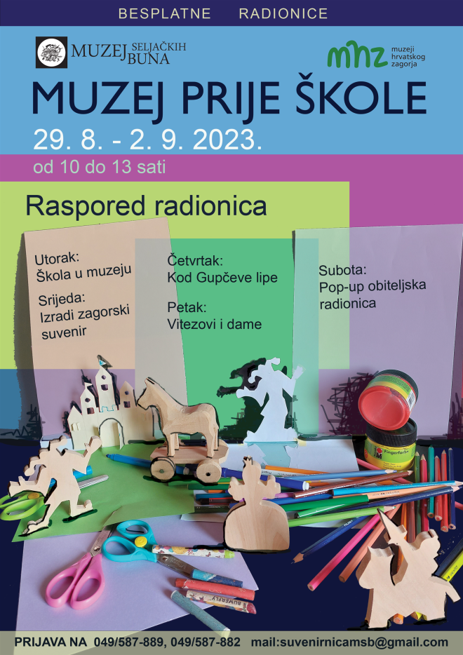 Prije početka nove školske godine, Muzej seljačkih buna organizira besplatne edukativno-kreativne radionice za djecu u sklopu programa Muzej prije škole. Radionice se održavaju od utorka, 29. kolovoza do subote, 2. rujna od 10 do 13 sati.