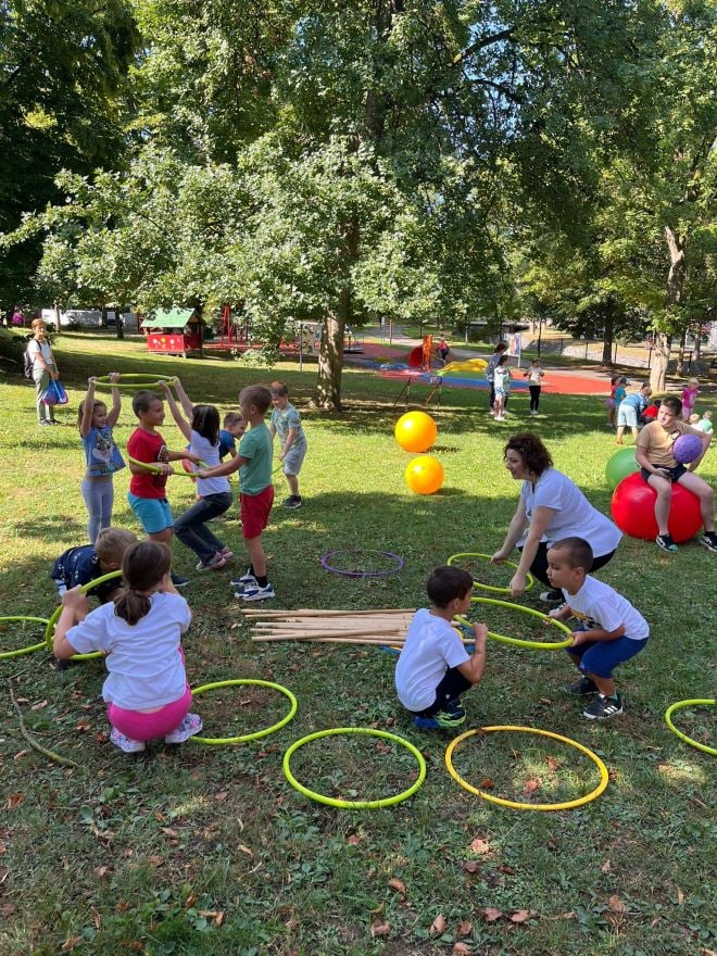 prevencije unutar zajednice. Perivoj je bio ispunjen smijehom i aktivnostima. Iskusni i stručni fizioterapeuti bolnice su kroz ritmičke zadatke i ciljane igre edukativno radili s mališanima (4–7 godina) i njihovim roditeljima. Fokus radionice bio je na razvoju pravilnih obrazaca pokreta/nja, držanju tijela i edukaciji o zdravom razvoju stopala.