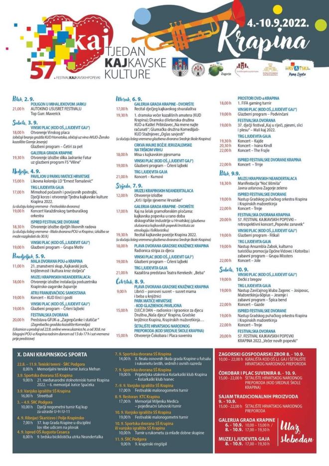 -Ove godine smo se vratili u punu formu, u punom smo pogonu, delamo sve kaj nismo mogli 3 godine zbog pandemije. Nikad više i nikad ljepših događanja, nikad bolji program, bez obzira radi li se o kulturi, sportu ili zabavi – najavio je predsjednik Društva za kajkavsko kulturno stvaralaštvo Damir Novina. Dodao je da uz Festival kajkavske popevke, Društvo radi i na festivalu dječje kajkavske poezije i poezije za odrasle te izložbi dječjih likovnih radova, a u toj priči sudjeluje više od 100 škola.