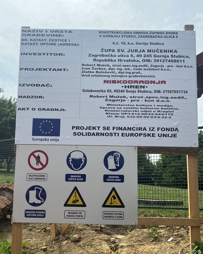 Dok su radovi na obnovi Župne crkve, ali i Kapele svetog Fabijana i Sebastijana u Slanom Potoku već duže vrijeme u punom zamahu, proteklih je dana u Gornjoj Stubici započela i konstruktivna obnova župnog dvora, koji je također stradao u potresu 2020. godine.