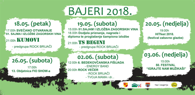 Dodajmo kako se u Bedekovčini događanja nastavljaju i u nedjelju 20. svibnja kad će se u 19 sati održati festival zabave glazbe HITfest, dok će se u subotu 26. svibnja s početkom u 17 sati održati 13. obljetnica FIO SHOW-a. Tjedan dana kasnije, u subotu 2.6. tu je od 20 sati rock večer uz nastup Rock brijača i bend Tvoja mama. Dan kasnije, u nedjelju 3.6. održat će se jubilarni festival 'Igrajte nam mužikaši'.