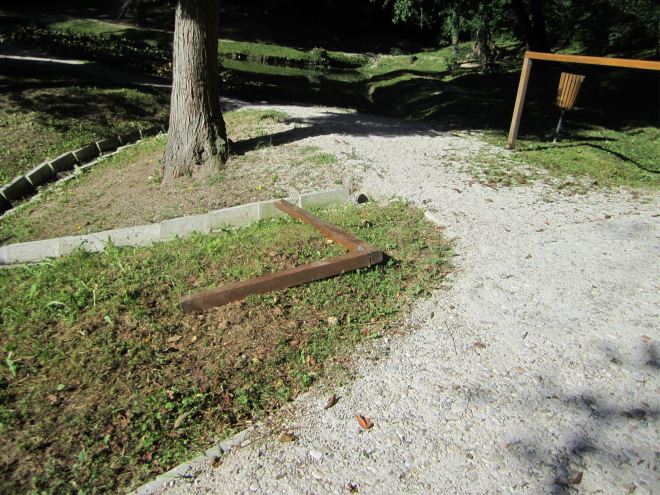 Uništen je rukohvat, tobogan, a stolovi su oštećeni od paljenja vatre te urezivanjem oštrim predmetima