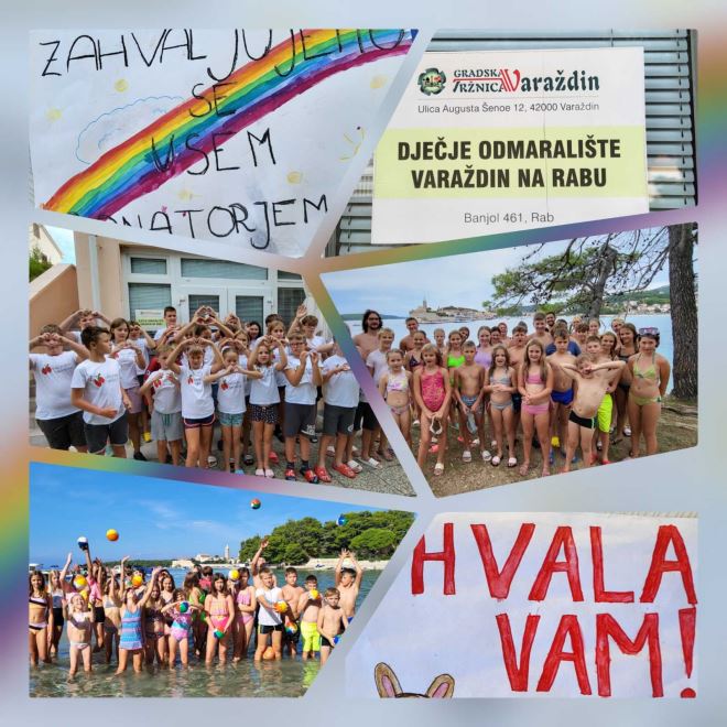 Varaždinsko Dječje odmaralište na Rabu ugostilo je 31 dijete i 6 učitelja Osnovne škole Ljubno ob Savinji, jednog od najteže u poplavama stradalih područja Slovenije, a troškove je financirao Grad Varaždin. Iz solidarnosti i prijateljstva prema susjednoj Sloveniji već par dana nakon prirodne katastrofe koja ih je zadesila 4. kolovoza, Grad Varaždin donirao je tri profesionalna odvlaživača zraka Gasilskoj zvezi Celja i Prostovoljnem gasilskem društvu u mjestu Nazarje, a na inicijativu saborske zastupnice Barbare Antolić Vupora, sada su osnovnoškolci iz Ljubna ob Savinji dobili priliku nekoliko dana provesti na Rabu.