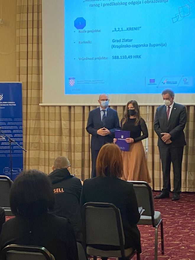 Projekt „3,2,1…KRENI!“ Grada Zlatara izabran je za financiranje na pozivu „Nastavak unaprjeđenja usluga za djecu u sustavu ranog i predškolskog odgoja i obrazovanja“, a u sklopu ESF Operativnog programa „Učinkoviti ljudski potencijali 2014. – 2020.“
