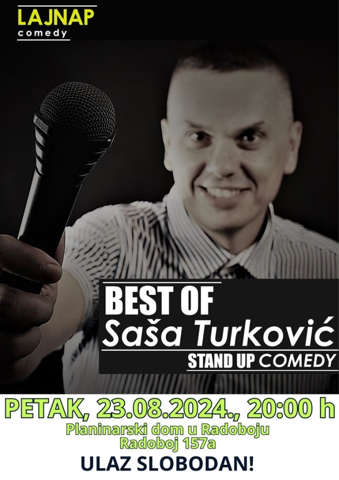 U sklopu Radobojskih ljetnih događanja organizira se večer smijeha za koju će se pobrinuti Saša Turković u svojem stand up showu.