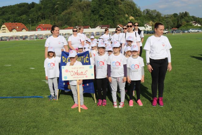 Djeca su se natjecala u bacanju loptice, u skoku u dalj, nogometu i štafeti. Po ukupnom zbroju bodova, prvo mjesto osvojio je vrtić Naša radost iz Pregrade, drugo mjesto pripalo je vrtiću Gustav Krklec iz Krapine dok je treće mjesto otišlo u ruke zabočkog vrtića Zipkica. Nagradu za fair play dobio je vrtić Zlatni dani iz Zlatar Bistrice.