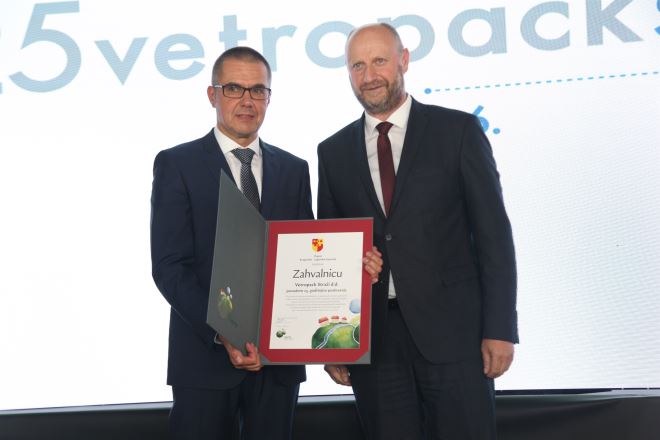 - Sva ta priznanja, zlatne kune za najboljeg izvoznika, nisu bez razloga i to samo potvrđuje iz godine u godinu kvalitetu Vetropack Straže. Koristim priliku da zahvalim obitelji Cornaz, koji su se godinu dana nakon rata u RH, 1996. godine, odlučili investirati u RH. Nije to baš bilo jednostavno. Došla je firma koja je htjela razvijati, ulagati, koja je htjela dijeliti svoje znanje i iskustva, da bi nakon 25 godina došli do toga da imamo Vetropack Stražu takvu kakva je ona danas, moderna tvornica s izuzetno kvalitetnim proizvodom, ali ono što je još bitnije, s izuzetno kvalitetnim ljudima – naglasio je župan te uručio direktoru Premužaku posebnu zahvalnicu za sve djelatnike i djelatnice Vetropack Straže, kao i poklon Claudeu Cornazu.